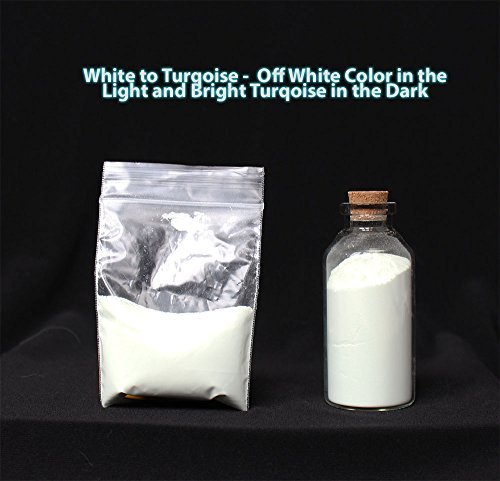 100 Grams (3.5 Ounces) of White to Turquoise Glow in the Dark Powder. Off White Color in the Daylight and Brilliant Turquoise in the Dark. Phosphorescent Is Great for Mixing with Paints, Resins, Spray Paint, Ink, Waxes, Screen Printing Ink, Fabric Ink, Ceramics and More
